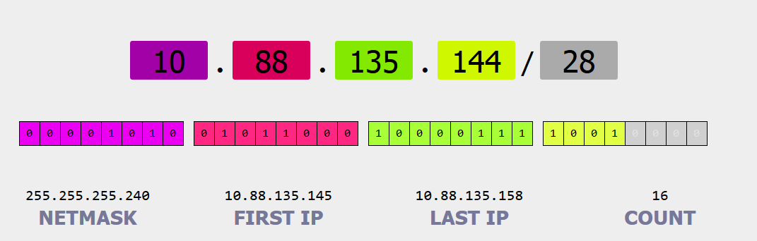 One of my favorite tool to explain when some Project managers or Project leads argue with VLAN information. Always we should have details to show why we cannot use/we must use this subnet. This website will show you a colorful data for subnets and details.