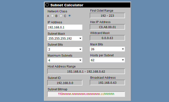 Another simple and easy tool for subnet calculation but with more details on binary information.