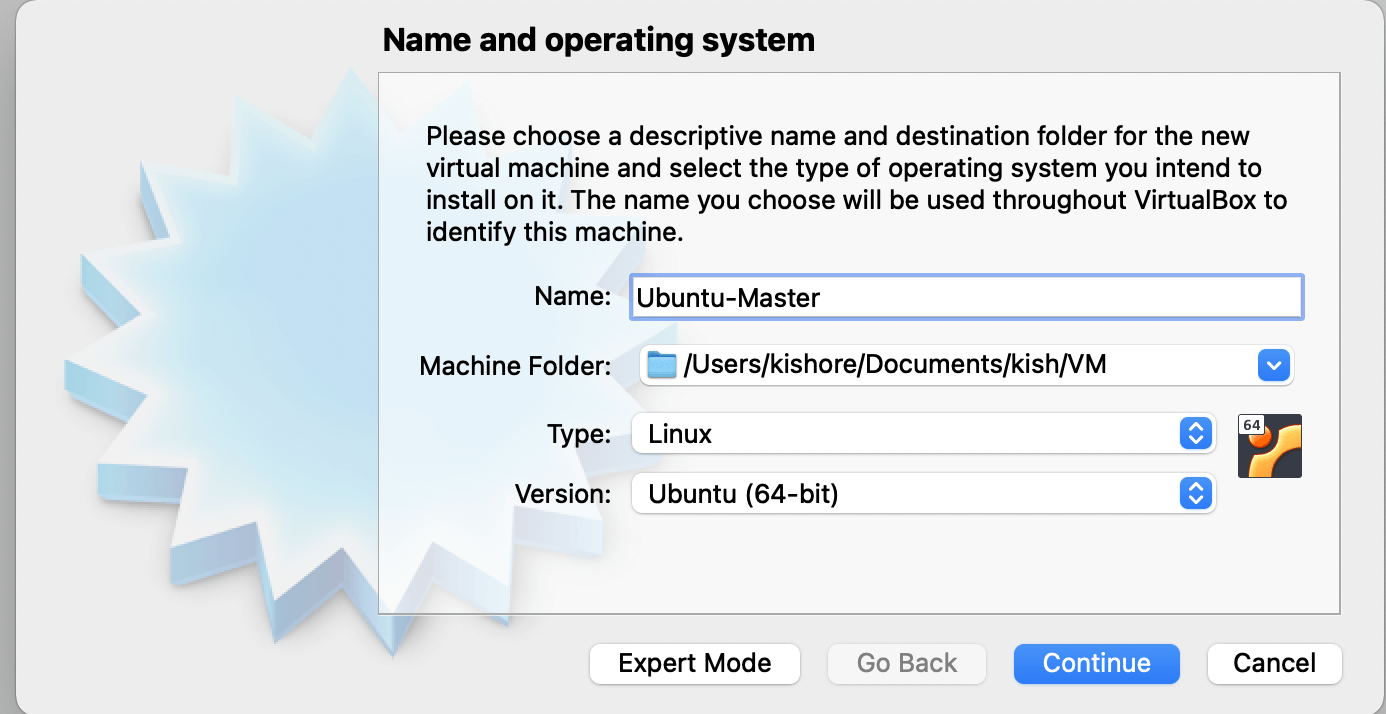 Let’s configure the VM, create a new Machine(VM instance). You can name the machine and mention the path for the folder on the host machine (Machine folder)