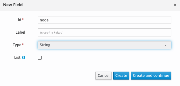 - Click Create to add the new field, or click Create and continue to add the new field and continue adding other fields.