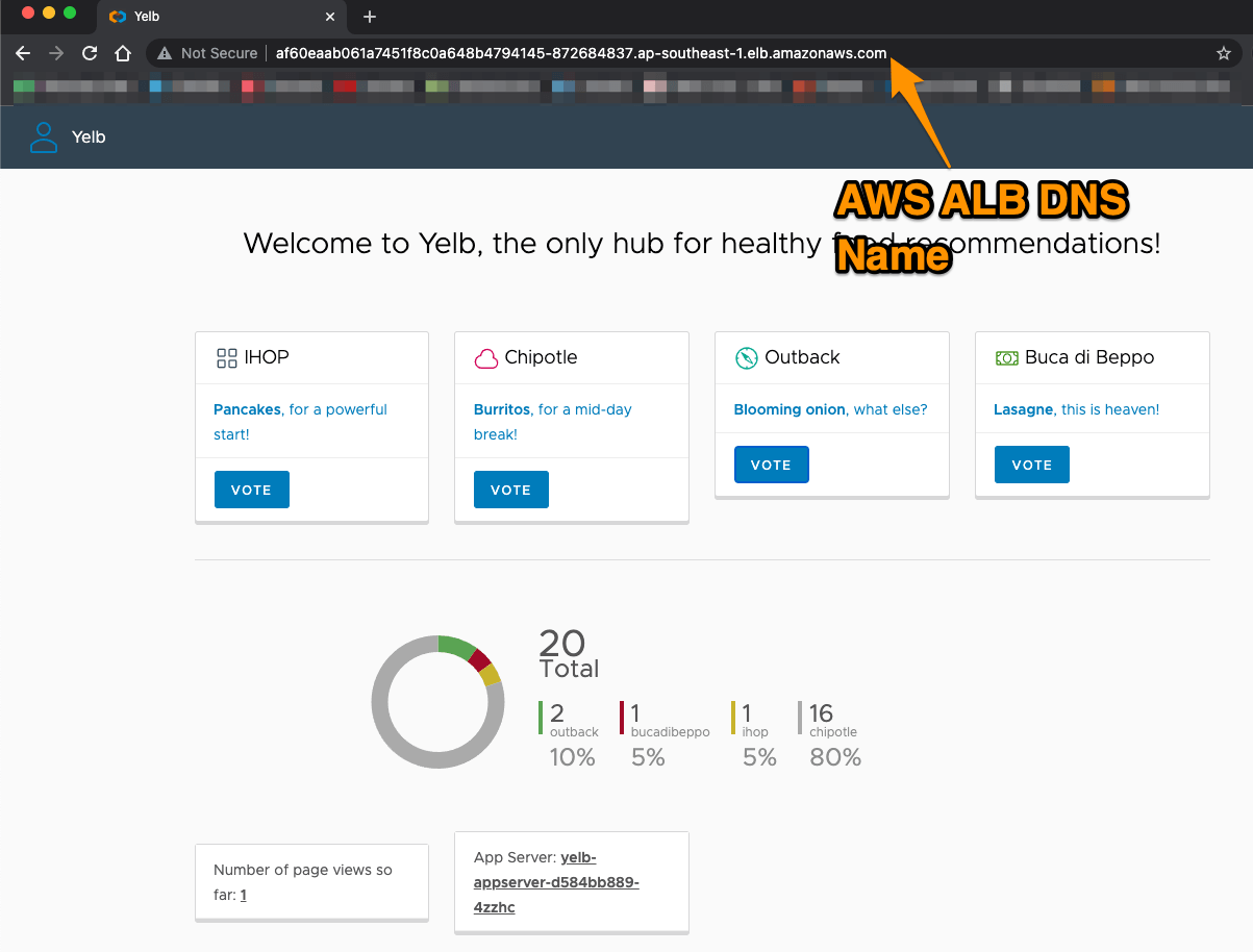 - Now you can keep refreshing your browser and the new version yelb-appserver-v2 deployment serves all the requests !