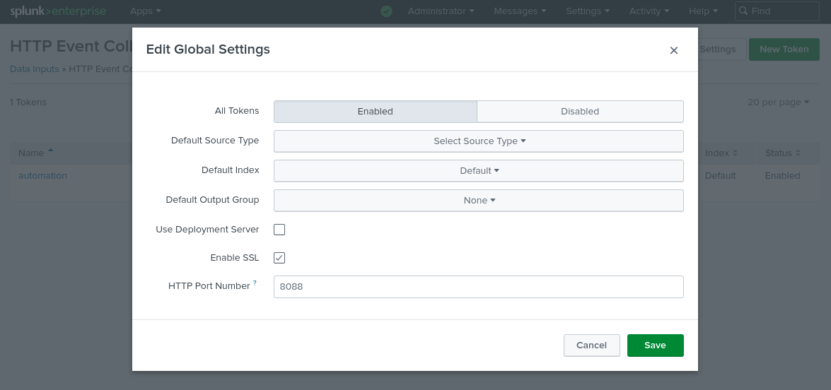 We’ll be using Splunk’s HTTP Event Collector (HEC) to receive logs from Ansible.