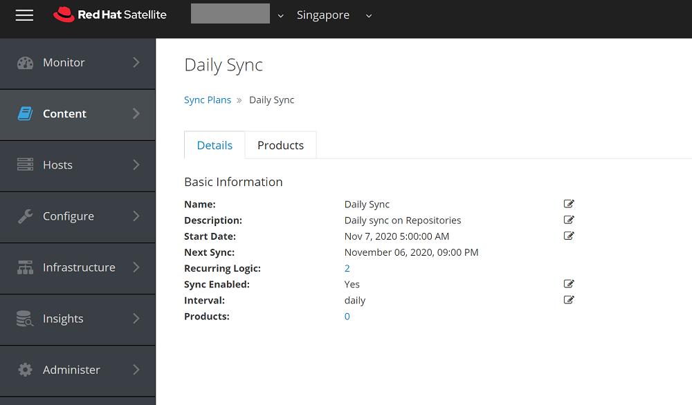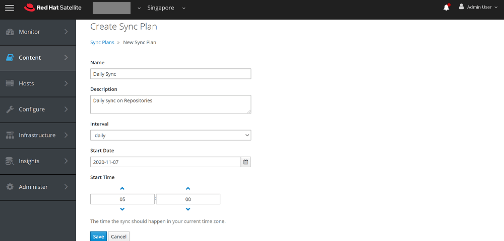 Content -> Sync Plans > Create Sync Plan