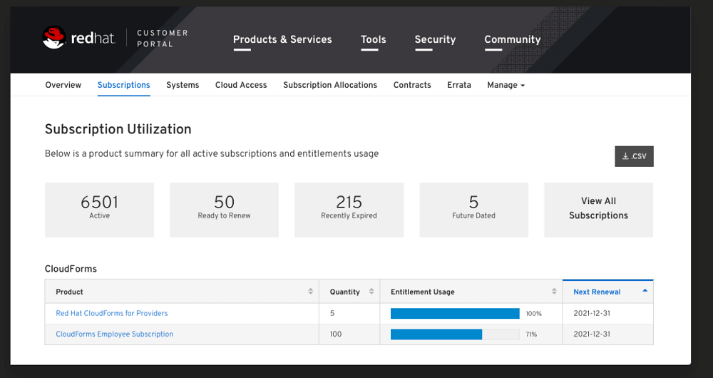 Download the subscriptions from the Red Hat portal.