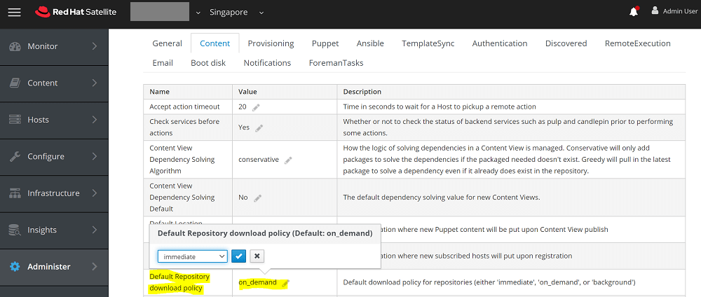 To change default download policy, follow below steps on Red Hat Satellite WebUI.
