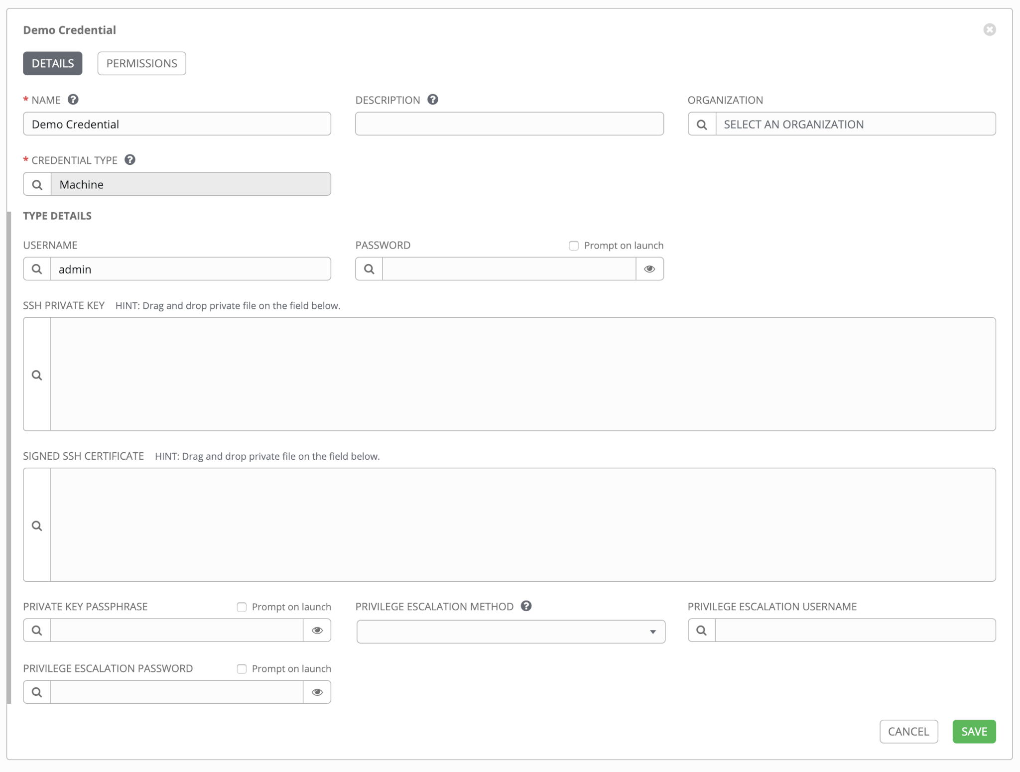 sudopassword in credential as shown below.